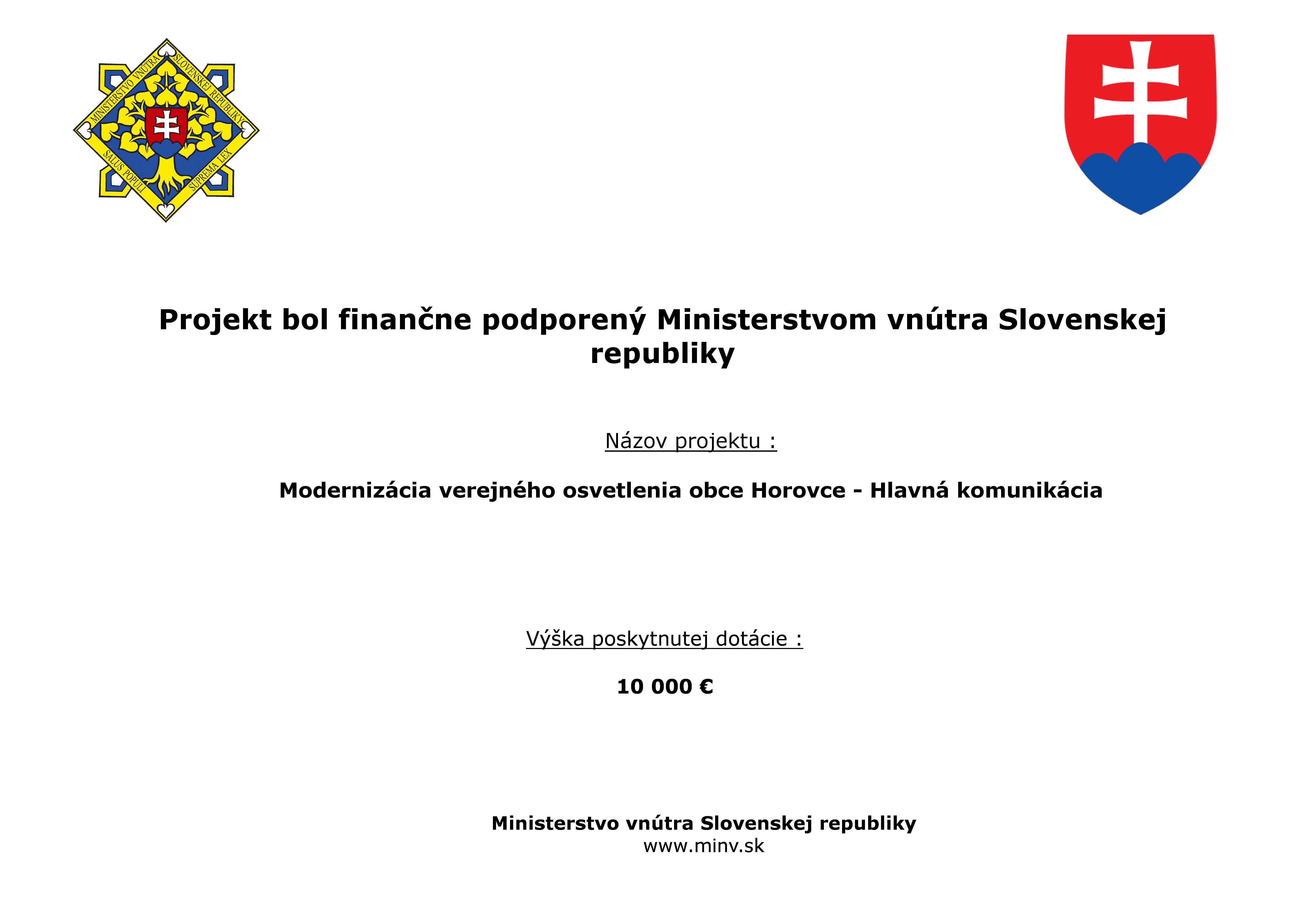 Modernizácia verejného osvetlenia v obci Horovce- hlavná komunikácia