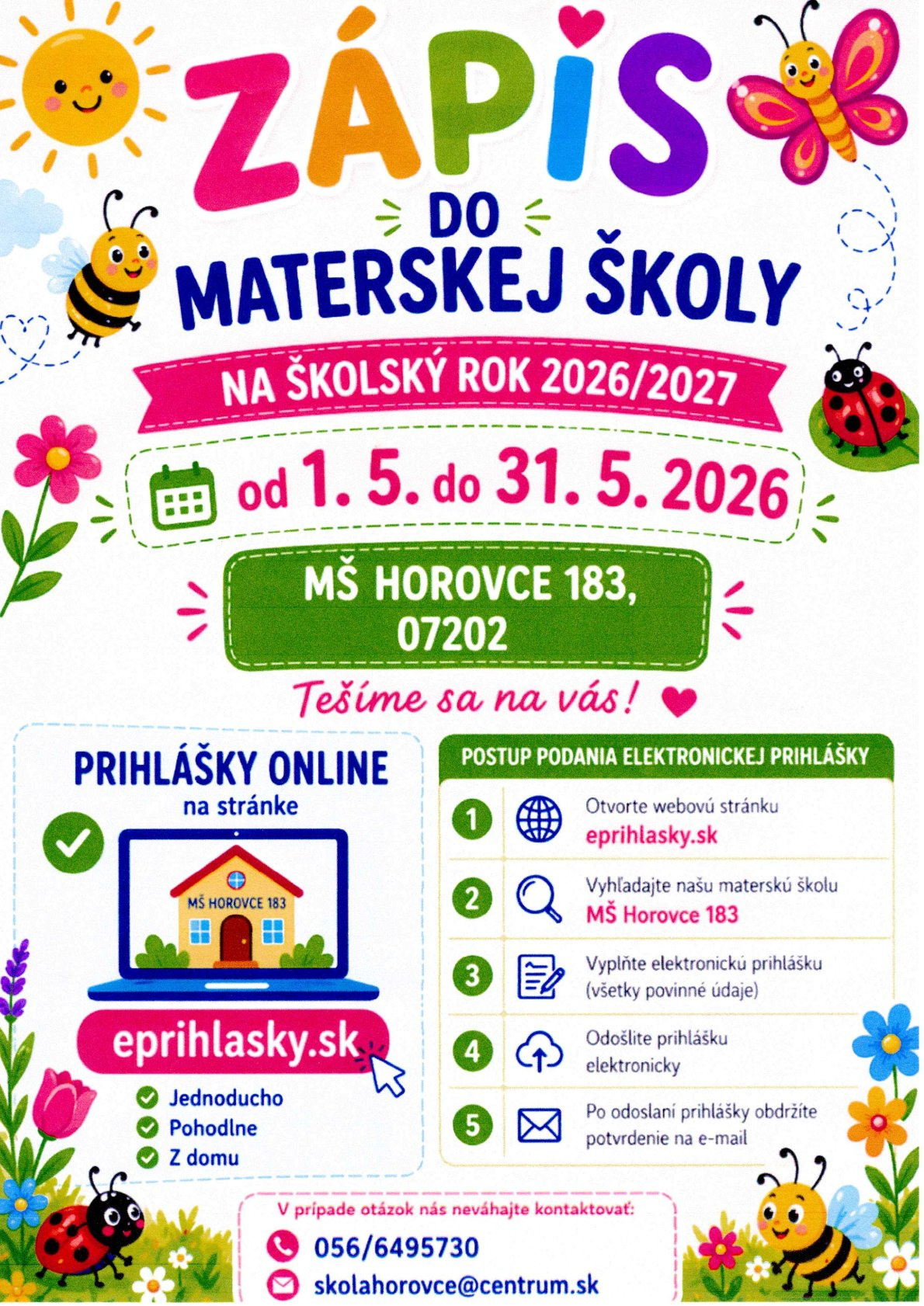 Zápis detí do Materskej školy na školský rok 2026/2027 bude od 1.05.2026 do 31.05.2026